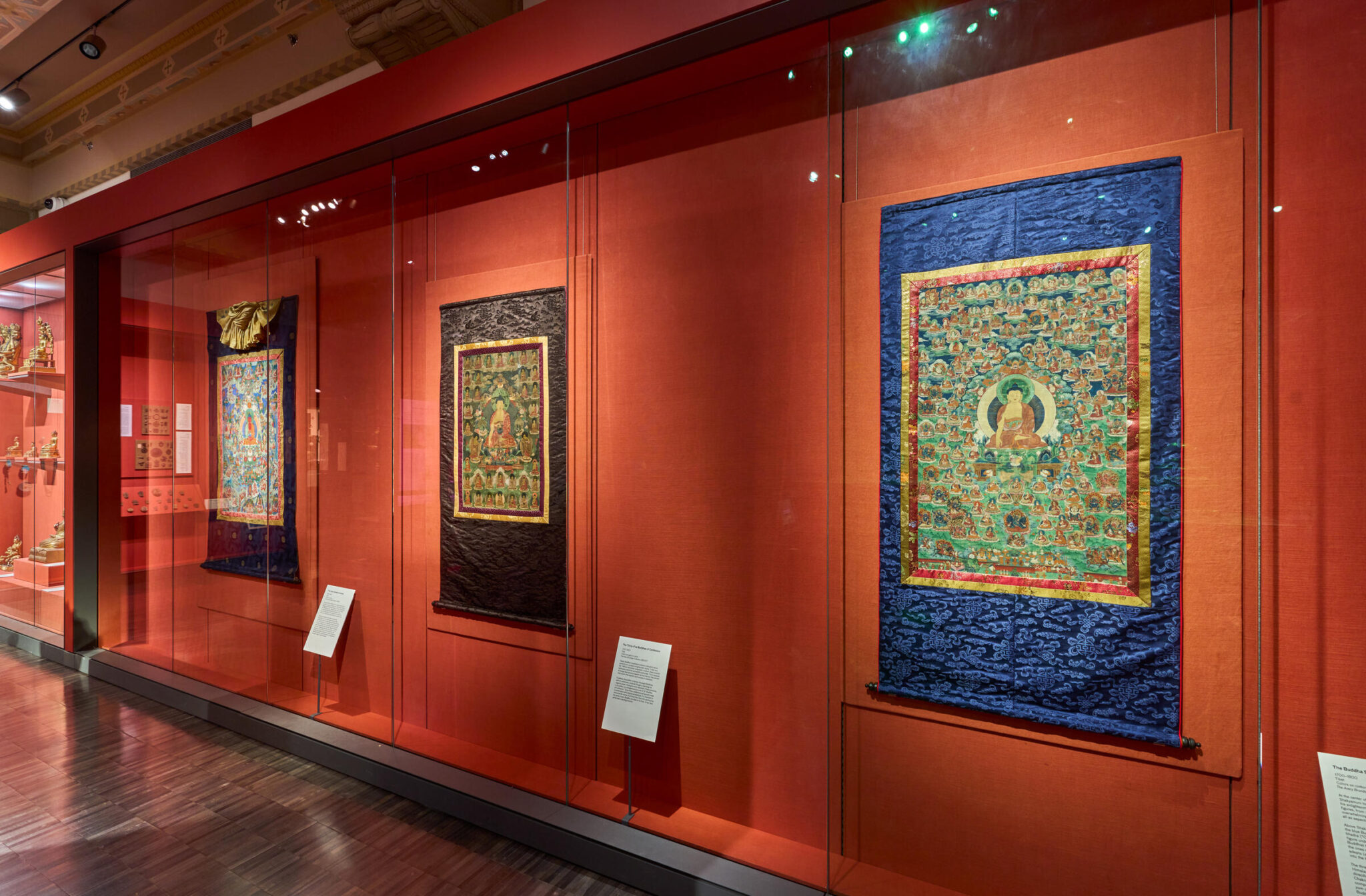 A diverse array of Buddhas appear throughout the galleries; some specialize in healing, while others facilitate spiritual practice. When meditated upon under the direction of a spiritual teacher (lama), the visualization of some of these deities is thought to have the power to produce enlightenment “in this very life.”